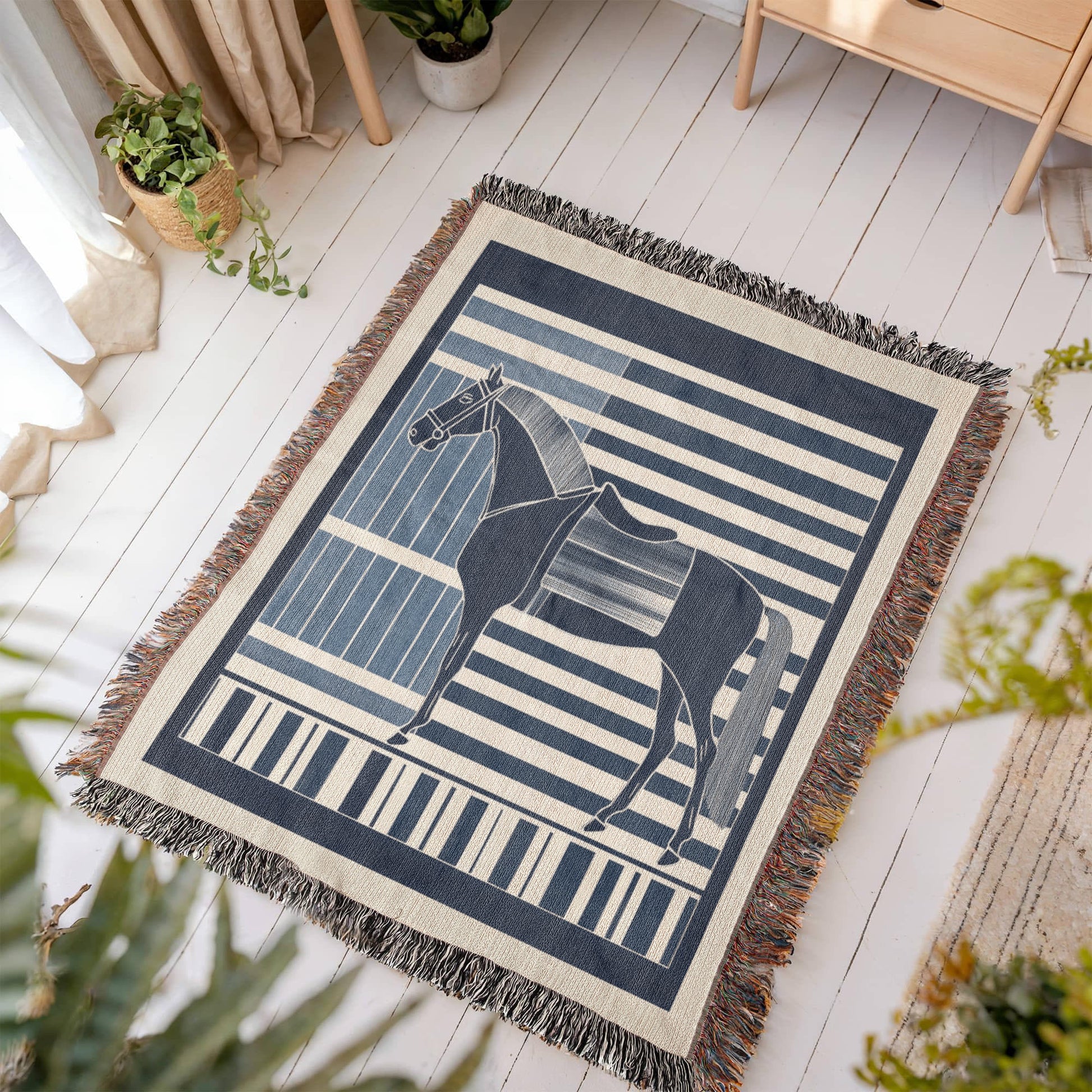 Perfect for those who appreciate artistry and heritage, this woven blanket is more than just décor—it’s a symbol of passion and prestige. The abstract horse design captures movement and grace, making it an ideal gift for collectors, riders, and lovers of equine beauty. With its superior craftsmanship and timeless appeal, this luxurious piece seamlessly integrates into elegant homes, equestrian estates, and refined living spaces, offering warmth, style, and an undeniable sense of sophistication.