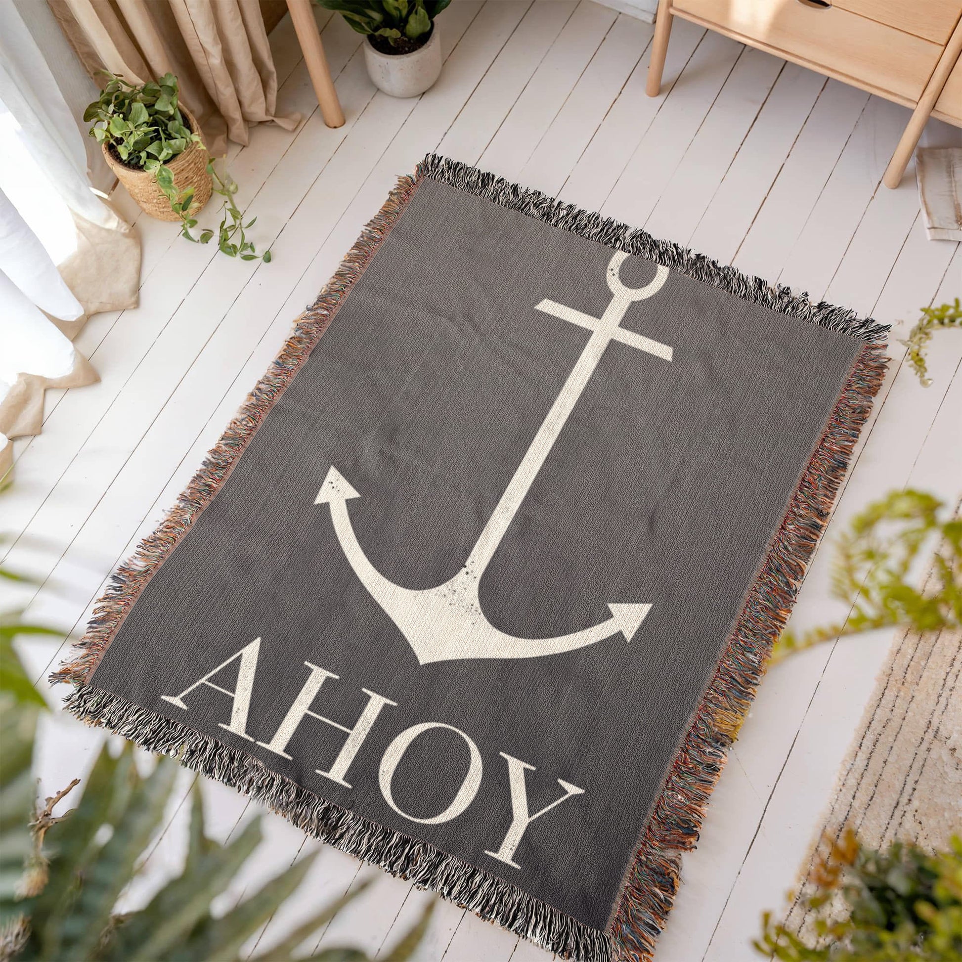 AHOY Heirloom Woven Blanket — Nautical Elegance for Coastal Homes
